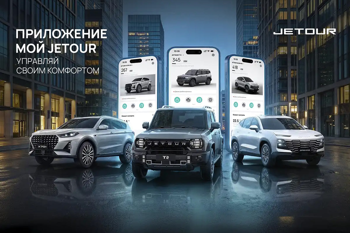 Управлять функциями автомобиля и контролировать его состояние владельцы JETOUR DASHING, JETOUR X70+ и JETOUR T2 могут через мобильное приложение «Мой JETOUR». Среди основных функциональных возможностей приложения – отображение местоположения автомобиля на карте, построение маршрутов к автомобилю, информация о статусах различных систем автомобиля (включая запас топлива), уровень заряда аккумулятора, давление в шинах и другие параметры. Не выходя из дома или офиса, можно проверить, закрыты ли двери, окна и люк в крыше. Доступны дистанционный запуск двигателя, разблокировка замков, включение обогрева руля и сидений, а также климат-контроль для прогрева или охлаждения салона. Кроме того, приложение «Мой JETOUR» помогает найти автомобиль на парковке и информирует о внештатных ситуациях, например, несанкционированном открытии дверей. Приложение будет доступно для IOS в Apple Store, для Android – в Rustore.