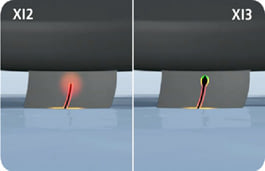Уникальная конфигурация блока протектора объединила в себе три технологических решения. Верхняя часть блока с острыми краями улучшает поперечное сцепление шины на снегу. Микропомпы размещенные в верхней части блока протектора оперативно удаляют водную пленку образующуюся на поверхности льда предотвращая проскальзывание. Z-образные ламели с эффектом самоблокирования обеспечивают дополнительные сцепные кромки и придают жесткость всему протектору.