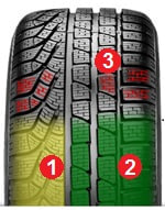 Уникальный асимметричный рисунок протектора с внутренней и внешней областью обеспечивает оптимальные характеристики шины на разных типах дорожных покрытий. Использование двух видов резиновой смеси протектора, жесткого с внутренней стороны шины для обеспечения оптимальной курсовой устойчивости, и более мягкого с внешней для максимального сцепления со льдом и снегом. Технология динамического температурного состава TDC (Temperature Dynamic Compound) обеспечивает превосходную управляемость и отличное сцепление на сухих и мокрых поверхностях.