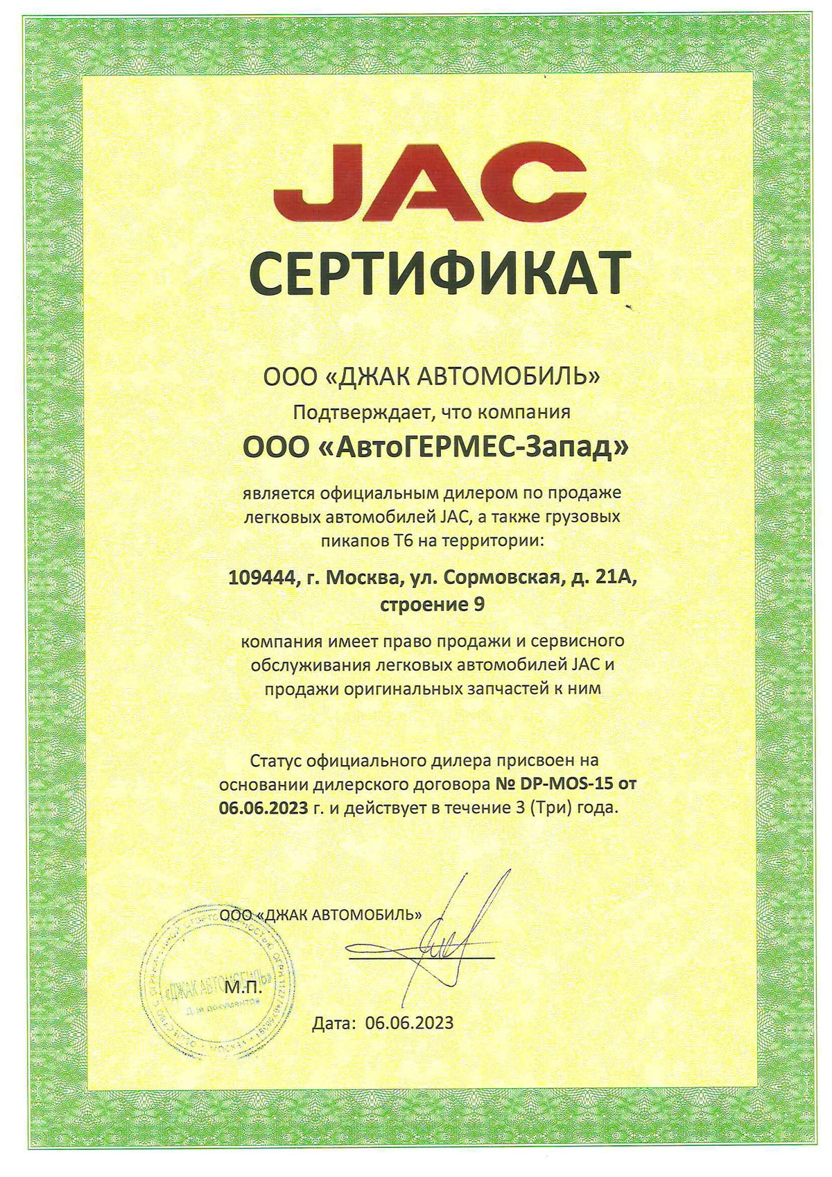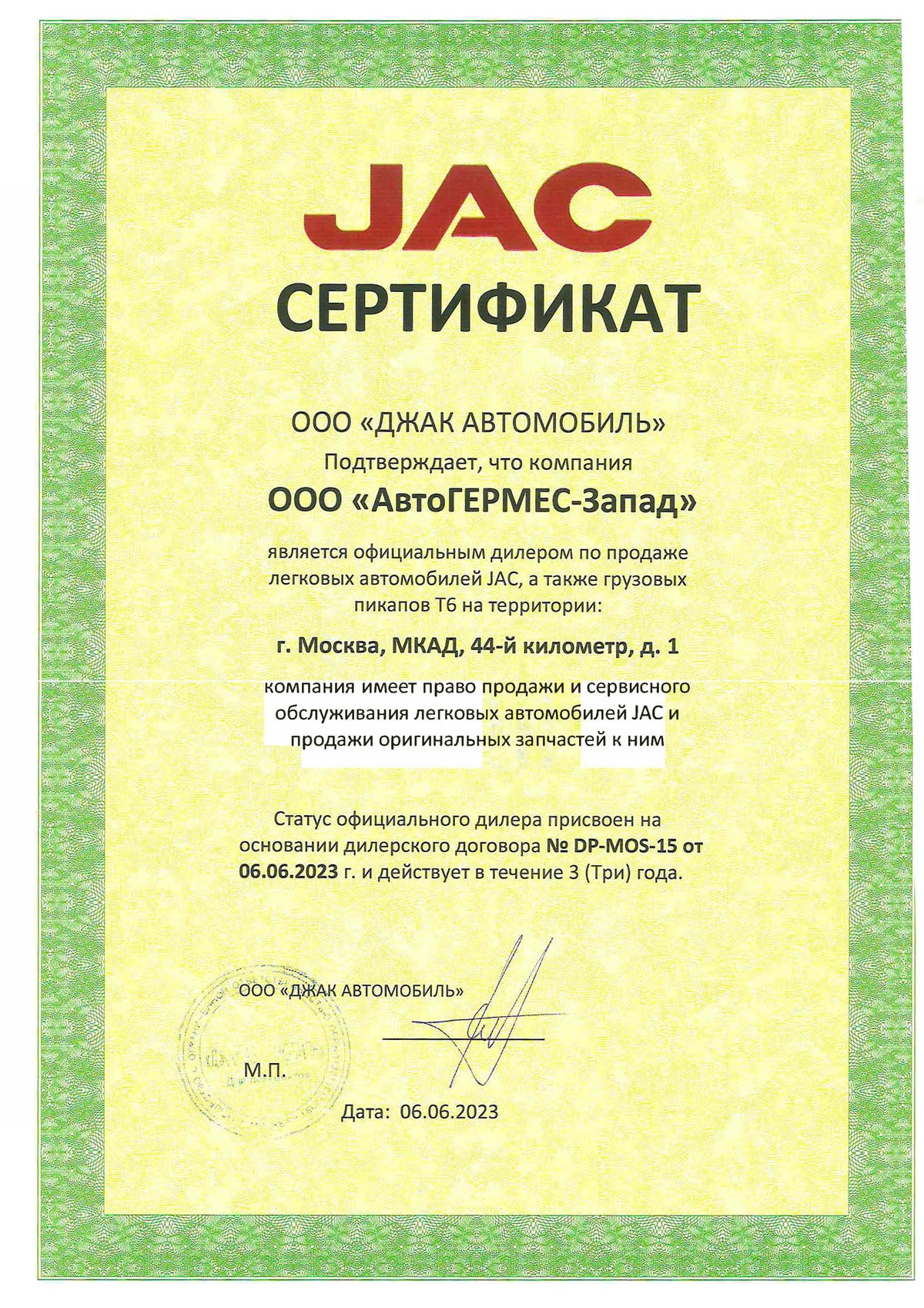 Компания «АвтоГЕРМЕС» официальный дилер JAC