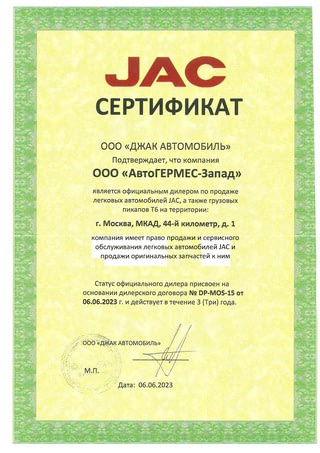 Автосалон «АвтоГЕРМЕС» - официальный дилер в Москве - предлагает приобрести новые модели от ДЖАК по сниженной стоимости. Вы сможете купить надежный, современный автомобиль без переплат за транспортировку из Китая. Прямое сотрудничество с брендом помогает нам удерживать доступные цены и гарантирует качественное послепродажное обслуживание.