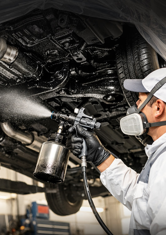 Мойка днища автомобиля, выполнение работ по антикоррозийной обработке с использованием вибро и шумоизоляционного покрытия премиального уровня с обработкой скрытых полостей и снятием подкрылков